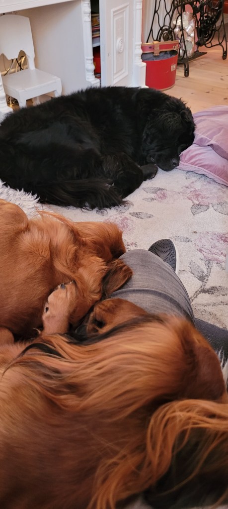 Kvällsmys i soffan och handen på Rebellas växande mage. Så mysigt
