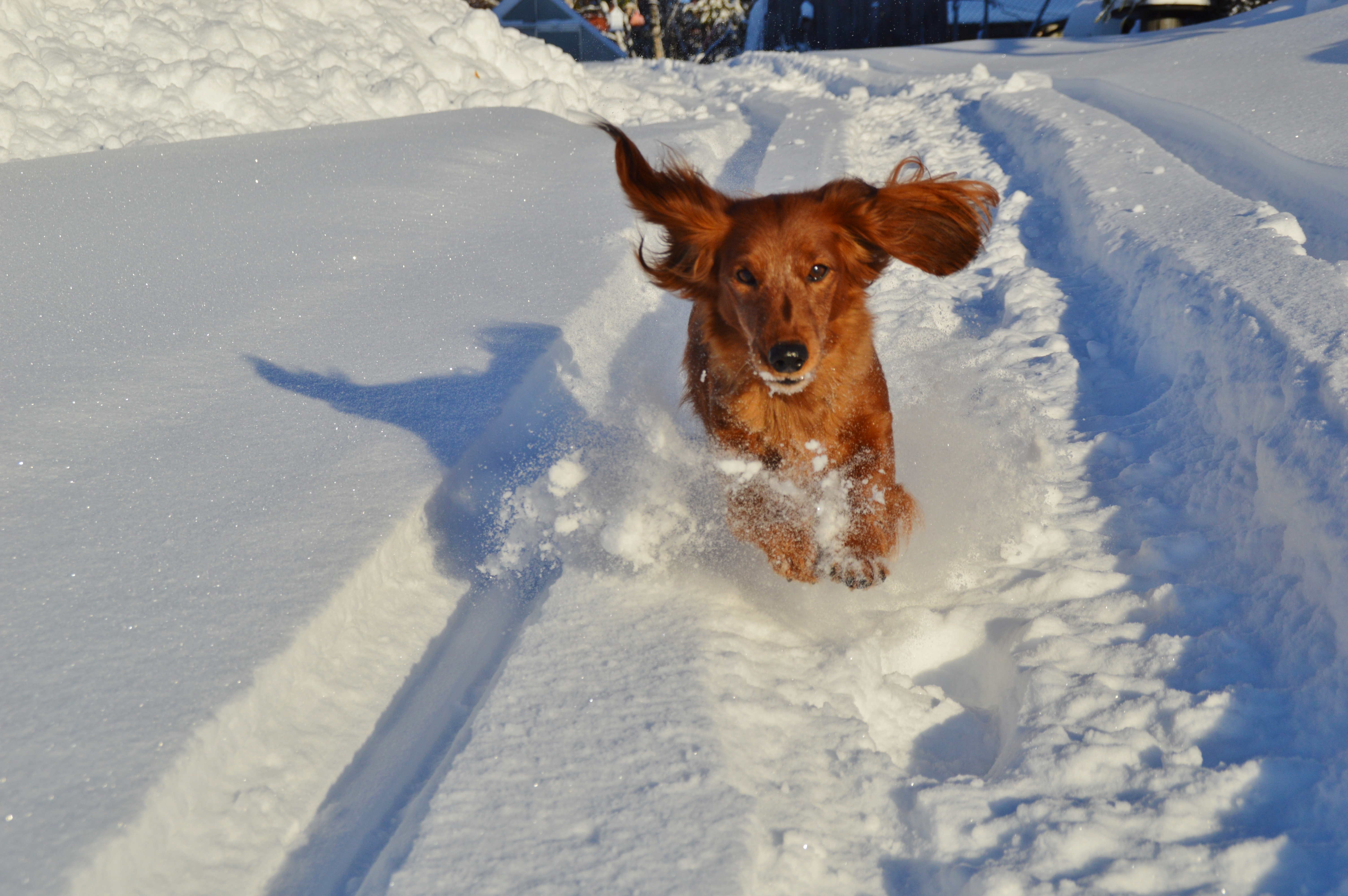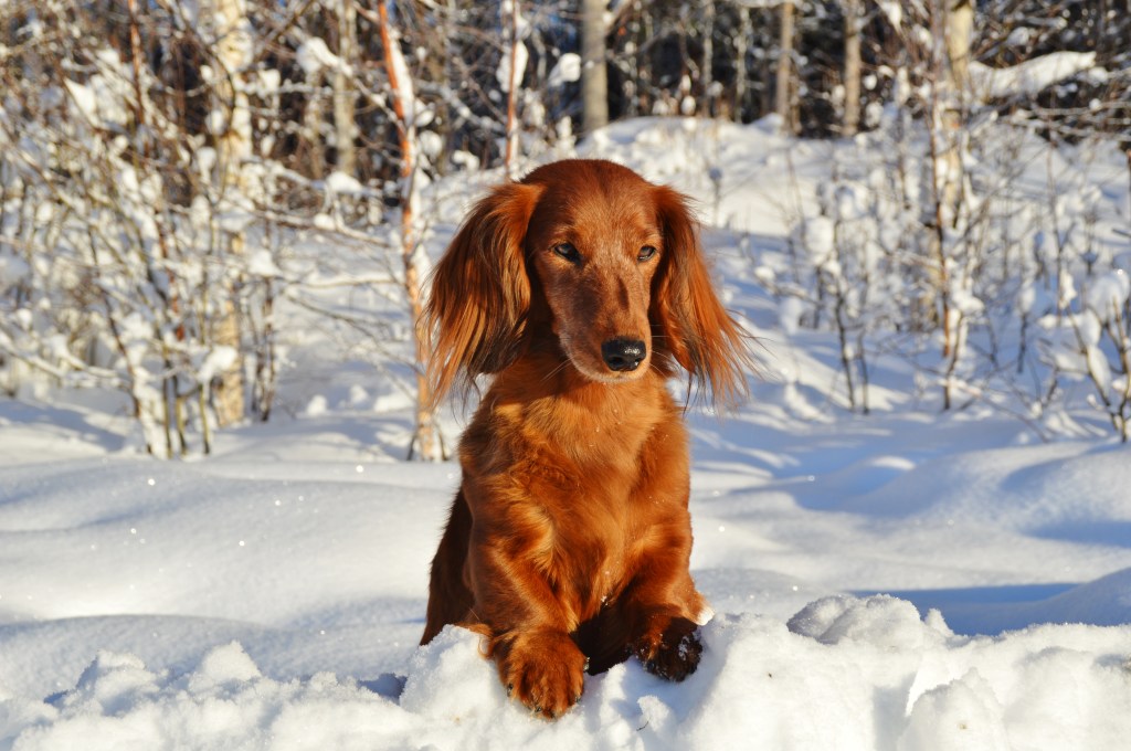 Vårvintern är här! Blå himmel, sol som börjar värma, kokkaffe nere vid Järvens Soffa… (en fikaplats vid Vindelälvens kant nedanför mitt hus där vi samlas) En helt underbar årstid som även lockar fram kamerastunder med taxarna. Dom gör sig så bra i solen och den glittrande snön. Här är min grånos, backens drottning och mormor till Skimra. SE VCH, NORD UCH, C.I.B, C.I.E Nallebackens Qharma ❤