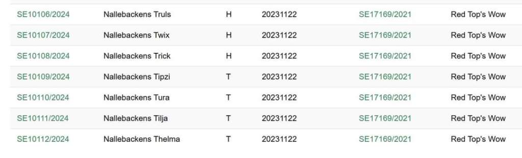 SE VCH, C.I.B, SE U(V)CH, FI UCH, NO UCH, C.I.E Nallebackens Royal Rebella