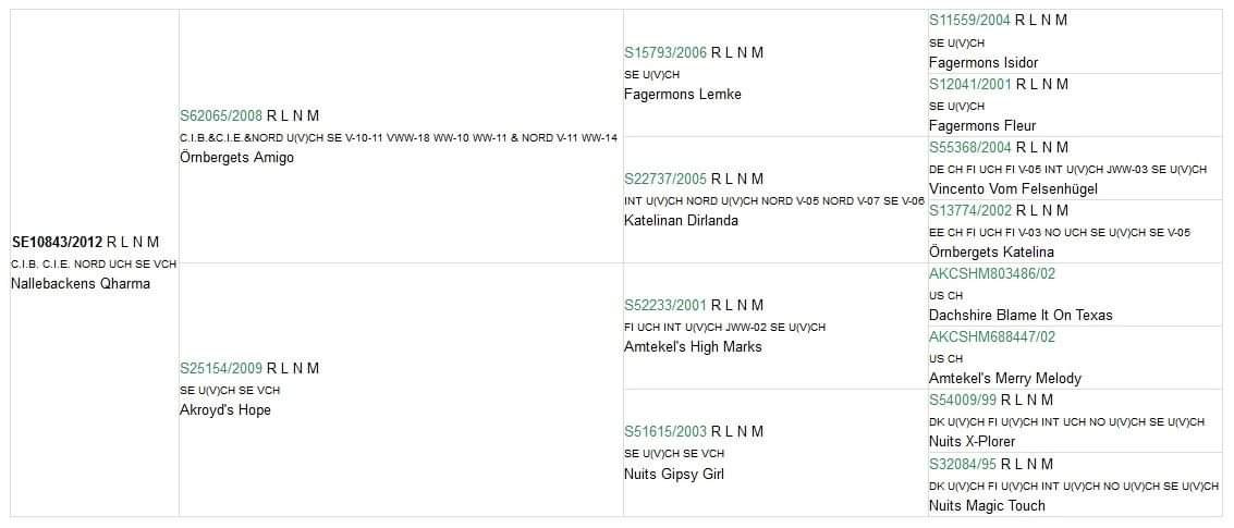 Hon är Svensk, Finsk och Dansk utställningschampion vilket omvandlats till Nordisk champion.